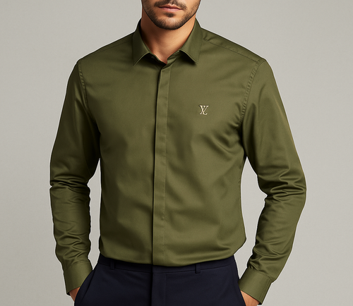 پیراهن سبز زیتونی مردانه |استایل کلاسیک و رسمی
