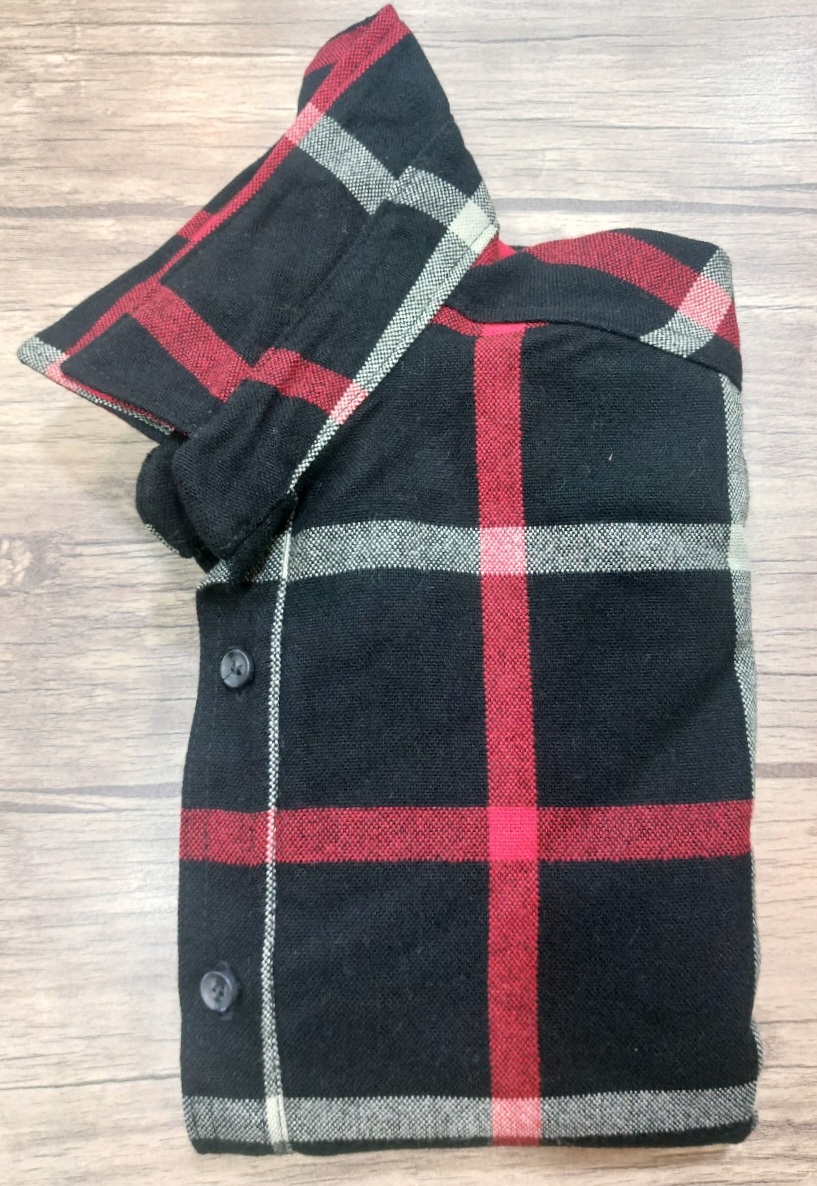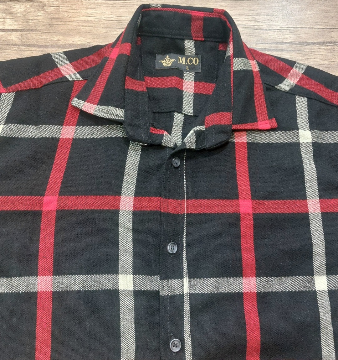 پیراهن چهارخانه مردانه قرمز مشکی پشمی استایل پاییزی