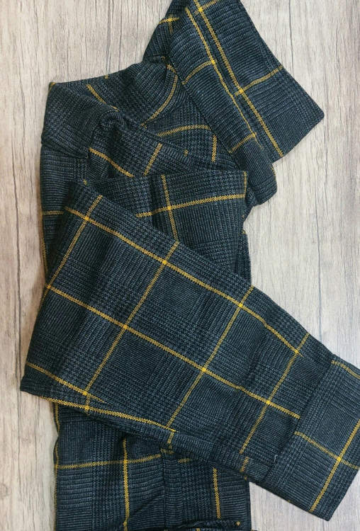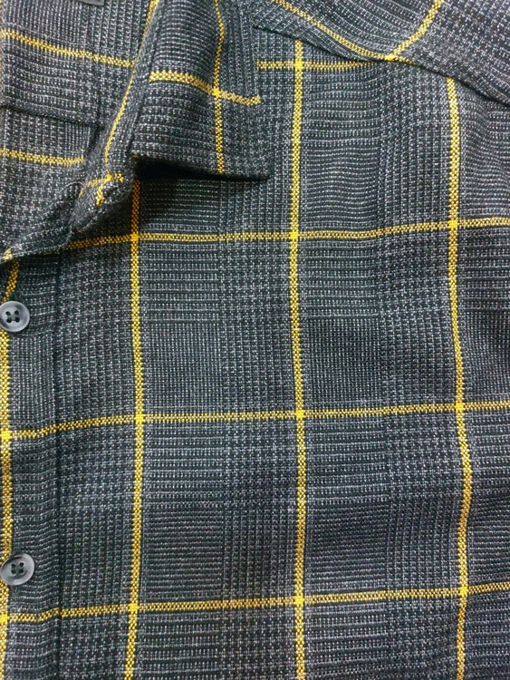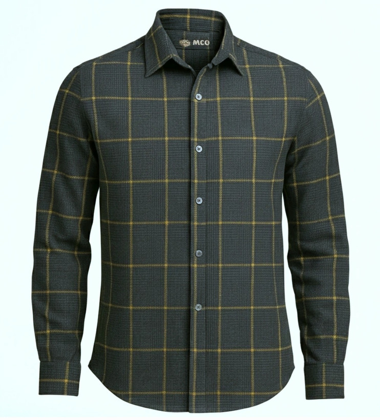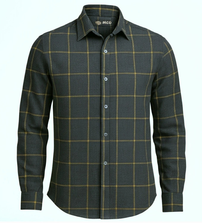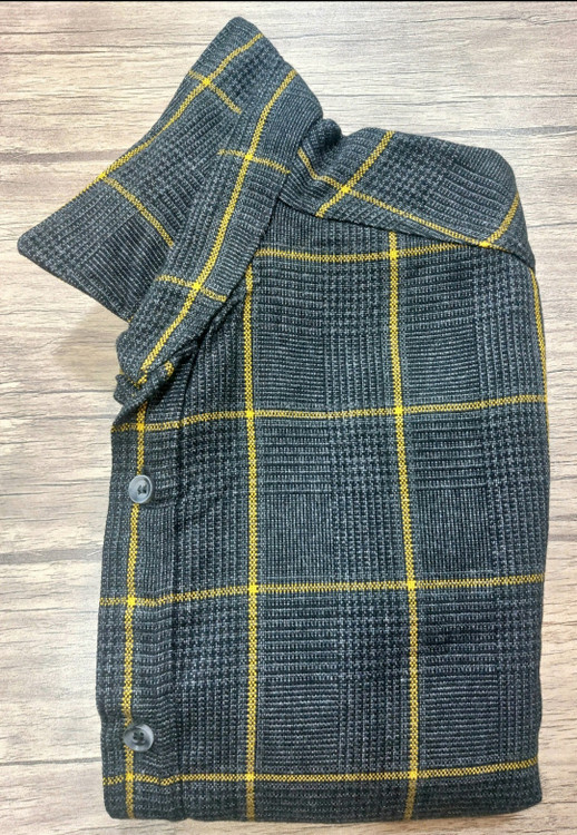 پیراهن مردانه چهارخانه پشمی پاییزه خاکستری تیره با خط زرد مدل کلاسیک