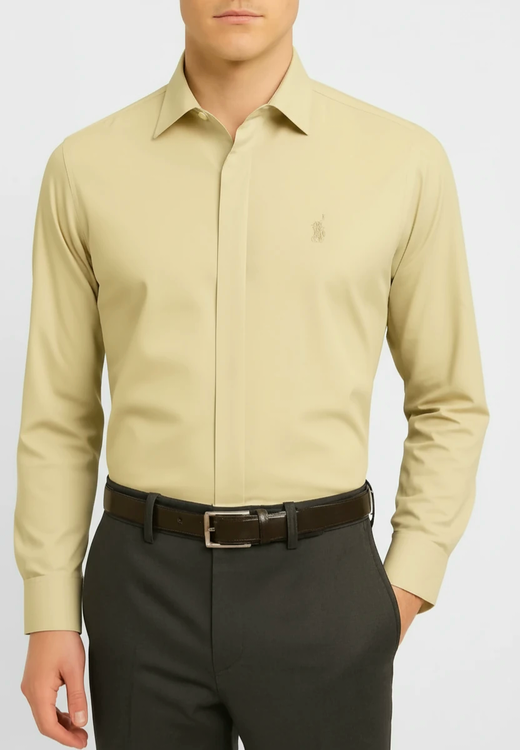 پیراهن مردانه مجلسی رنگ بژ کلاسیک| استایل کلاسیک و رسمی