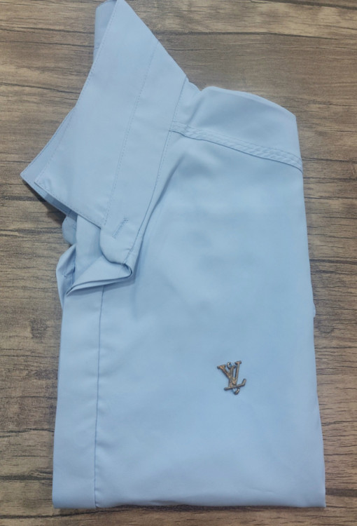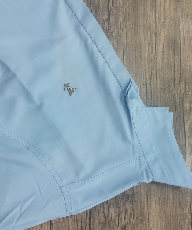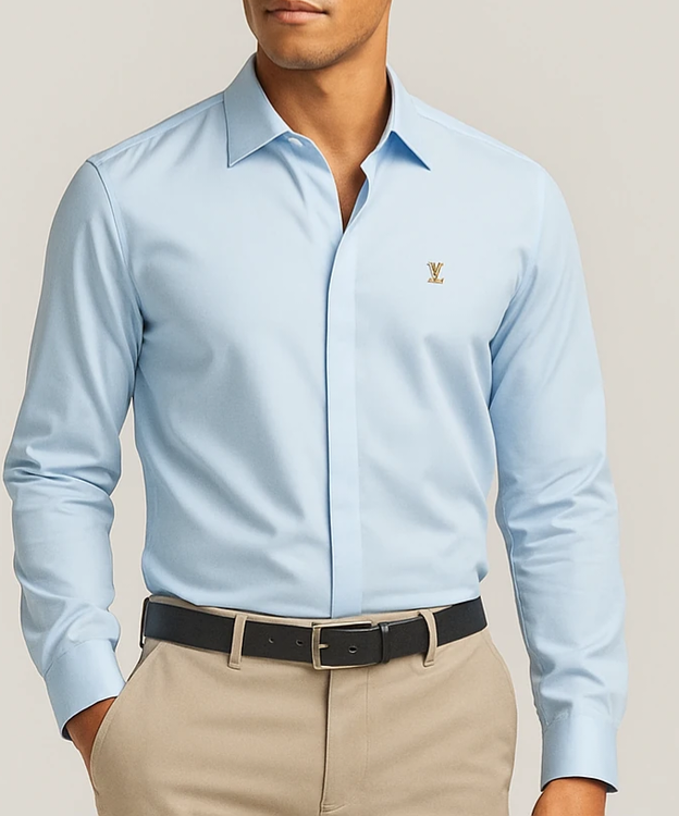 پیراهن مردانه آبی روشن مجلسی | دکمه مخفی پارچه دوشین