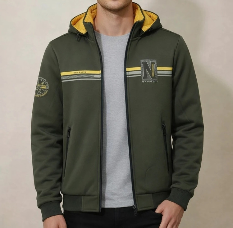 سویشرت دورو مردانه سبز ماشی با آستر زرد | گرم، اسپرت و روزمره