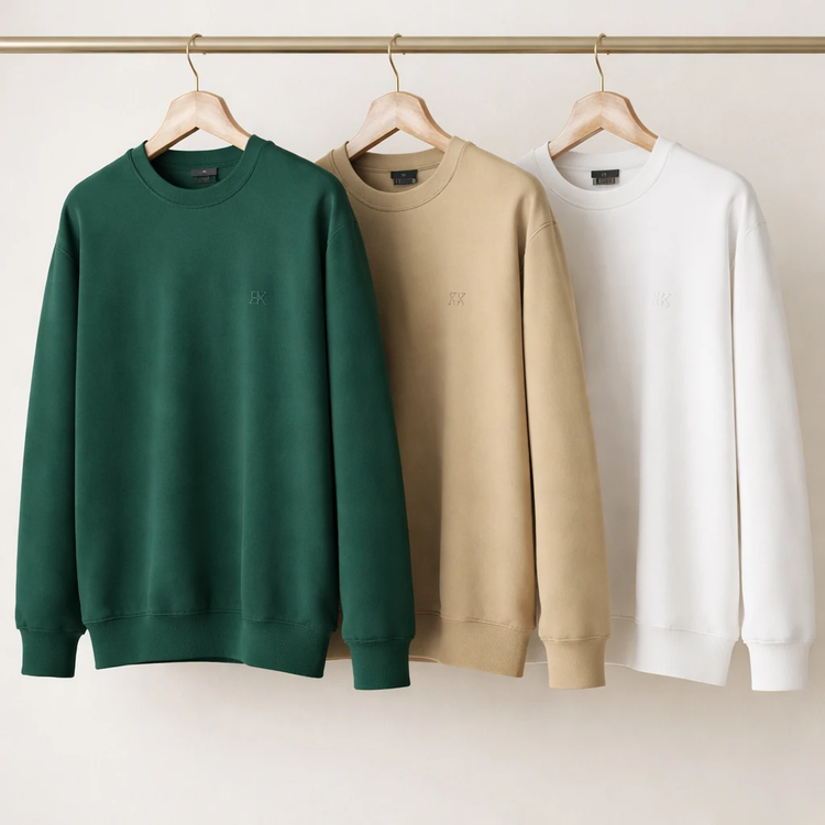 بلوز مردانه ساده آستین بلند | سه رنگ سبز تیره، سفید و کرمی | پاییزه بهاره