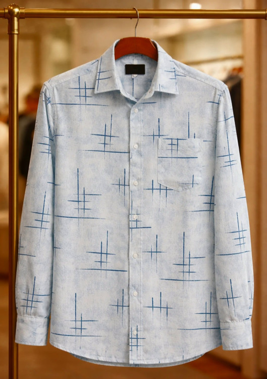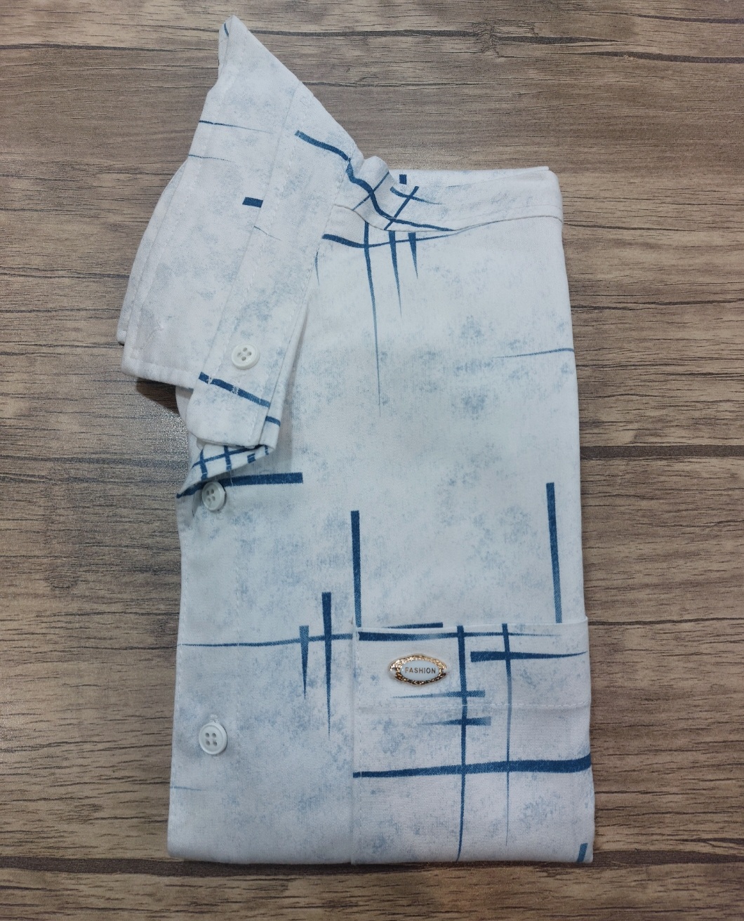 پیراهن مردانه آستین بلند طرح سفید خطی ابر و بادی