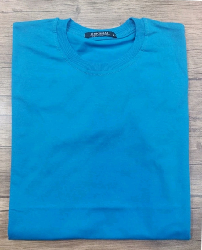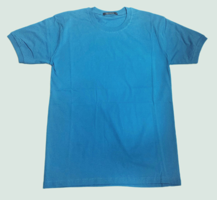 تیشرت مردانه رنگ آبی ساده یقه گرد
