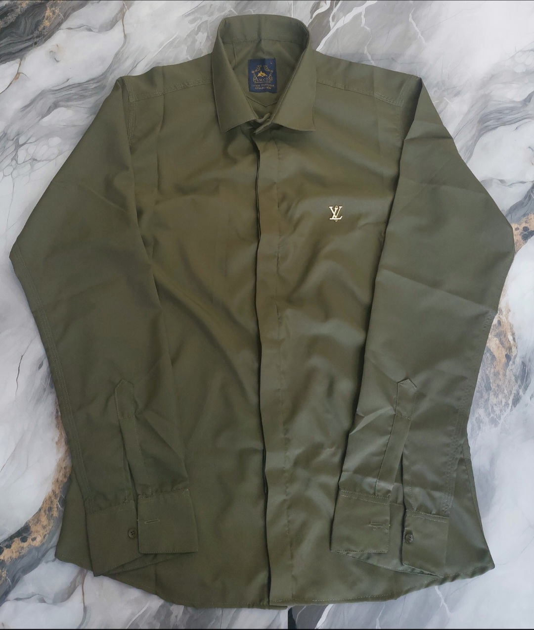 پیراهن مجلسی رنگ سبز دکمه مخفی