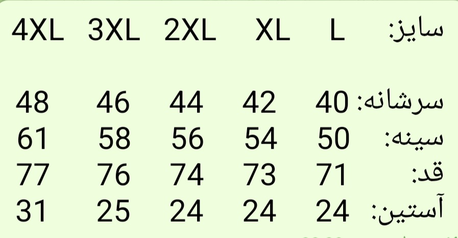 سایز: 4XL 3XL 2XL XL L