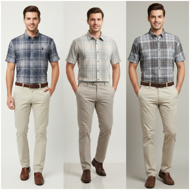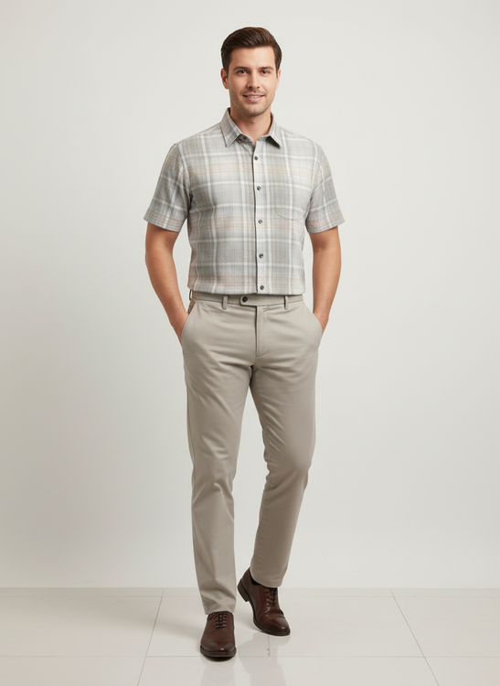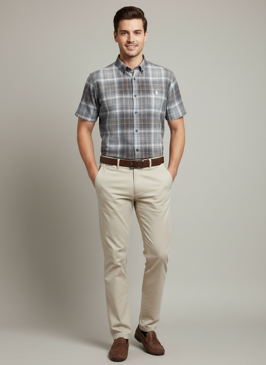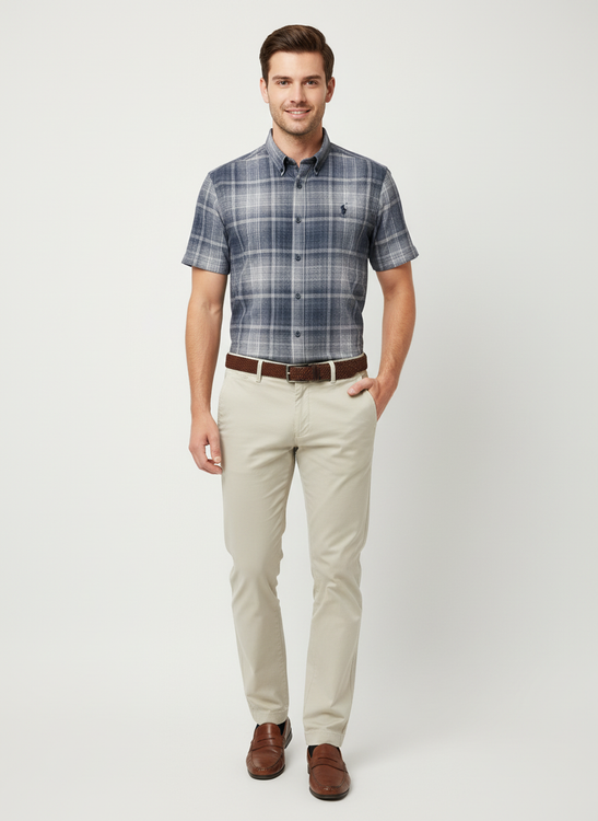 پیراهن مردانه چهارخانه آستین کوتاه استایل کلاسیک
